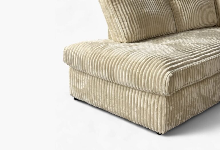 De Loungebank Teddy straalt warmte en gezelligheid uit dankzij zijn zachte ribfluwelen bekleding en royale zitkussens. Met zijn stevige vormgeving en comfortabele diepte is hij ideaal om heerlijk te ontspannen, terwijl het tijdloze ontwerp in elk interieur past.