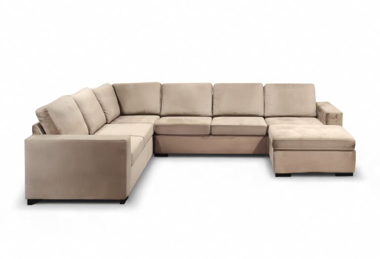 De U-Bank Mila is ontworpen voor wie houdt van royale zitruimte en een luxueuze uitstraling. Met haar ruime U-vormige opstelling biedt deze bank plaats aan het hele gezin — ideaal voor gezellige avonden of ontspannen momenten alleen. De zachte zitting en stevige rugkussens zorgen voor een uitgebalanceerd zitcomfort dat zowel uitnodigend als ondersteunend aanvoelt.