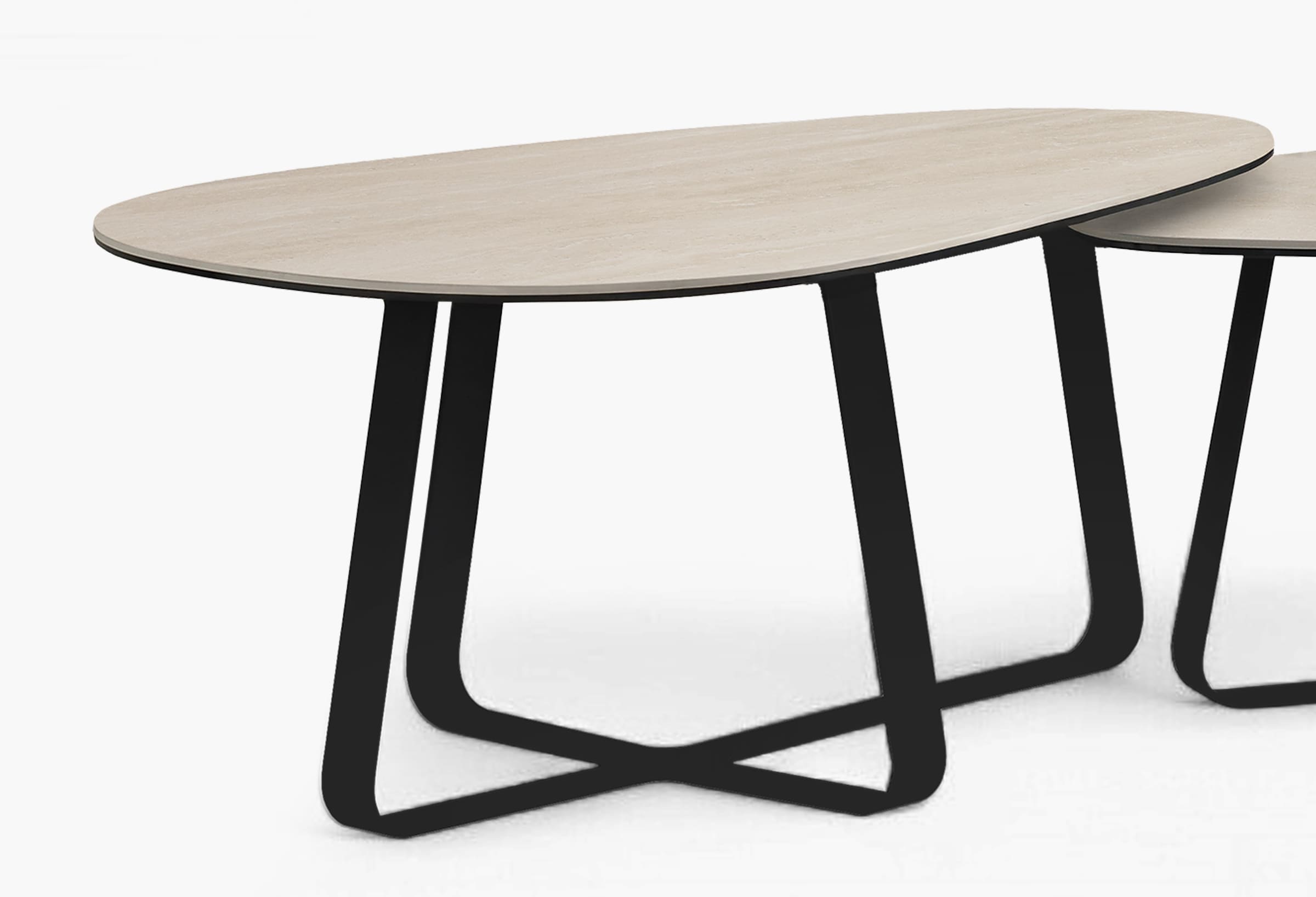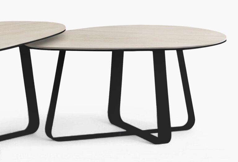 De tafel staat stevig op een robuuste metalen basis, afgewerkt met een zwarte poedercoating. Deze afwerking geeft niet alleen een tijdloze uitstraling, maar biedt ook bescherming tegen slijtage en krassen.
