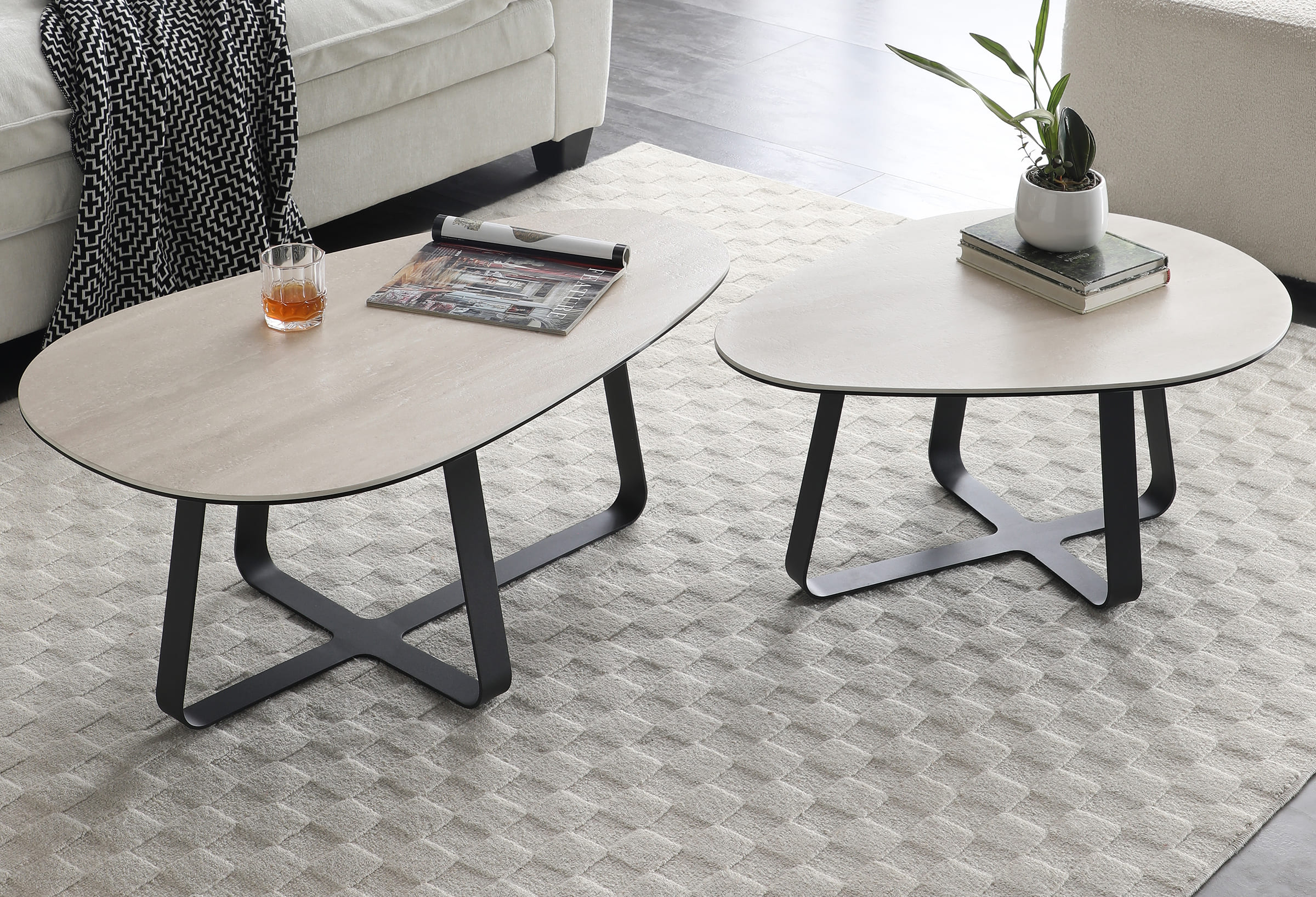 Laat je verleiden door deze innovatieve salontafel-set, waar stijl, functionaliteit en flexibiliteit naadloos samenkomen.